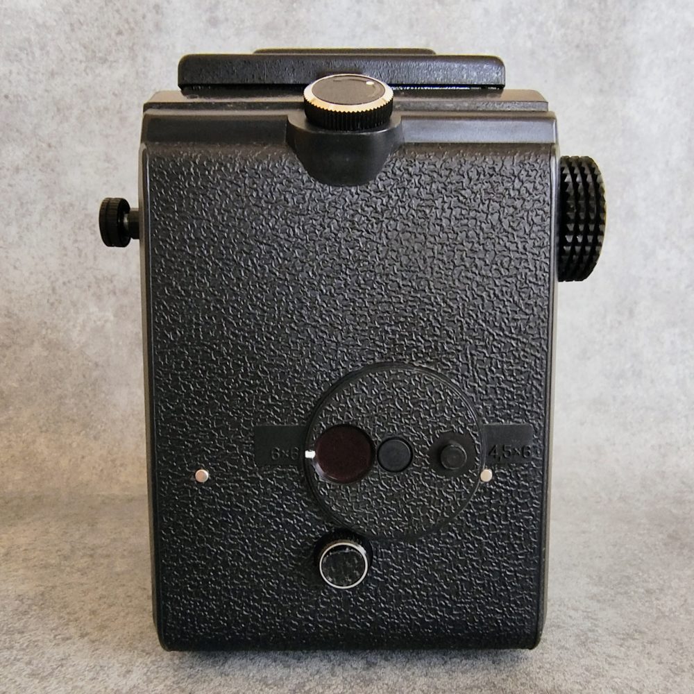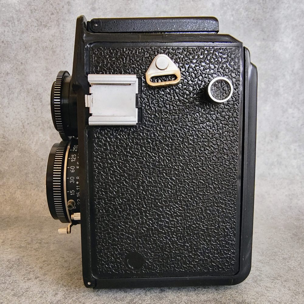 金属製の高級二眼レフカメラ(例:ローライフレックス)に比べると、プラスチック製ボディにより非常に軽量であり、手持ちでの撮影がしやすい点が特徴的。中判カメラとしてはコンパクトな部類に入る。