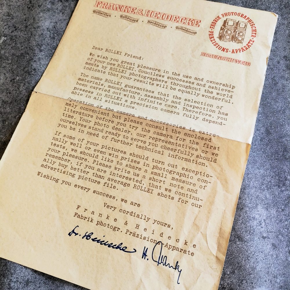 【ローライからのウェルカムレター】Franke & Heideckeの署名付き/Welcome Letter from Rollei