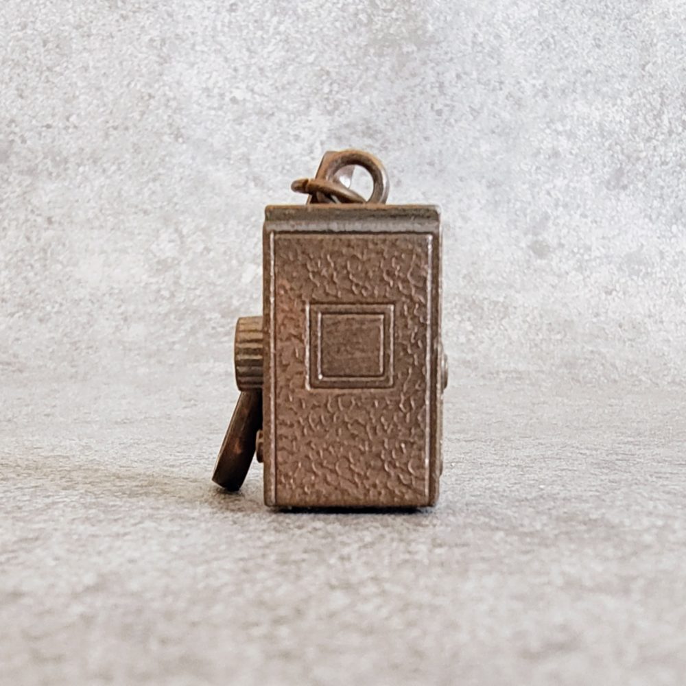 本品は二眼レフカメラ(Twin-Lens Reflex Camera)を模した金属製のキーホルダーである。素材には主に亜鉛合金や真鍮と推定される金属が用いられており、無垢の鋳造によって小型ながら精緻な造形が施されている。