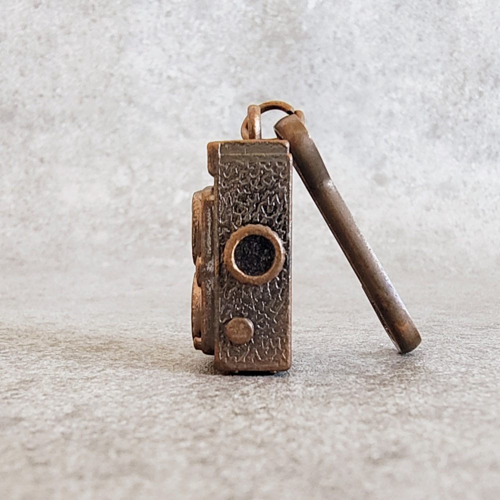 In the past, twin-lens reflex (TLR) cameras—used by looking down into the viewfinder—were beloved by photography enthusiasts, from professionals to amateurs. With their distinctive dual-lens design and boxy shape, these cameras remain iconic symbols of photographic history.This small keychain, modeled after a twin-lens reflex camera, may appear to be a simple trinket at first glance. However, its detailed form reflects a deep respect for photographic culture and a sense of nostalgia. We invite you to look beyond its size and discover the broader cultural significance captured in this miniature object.